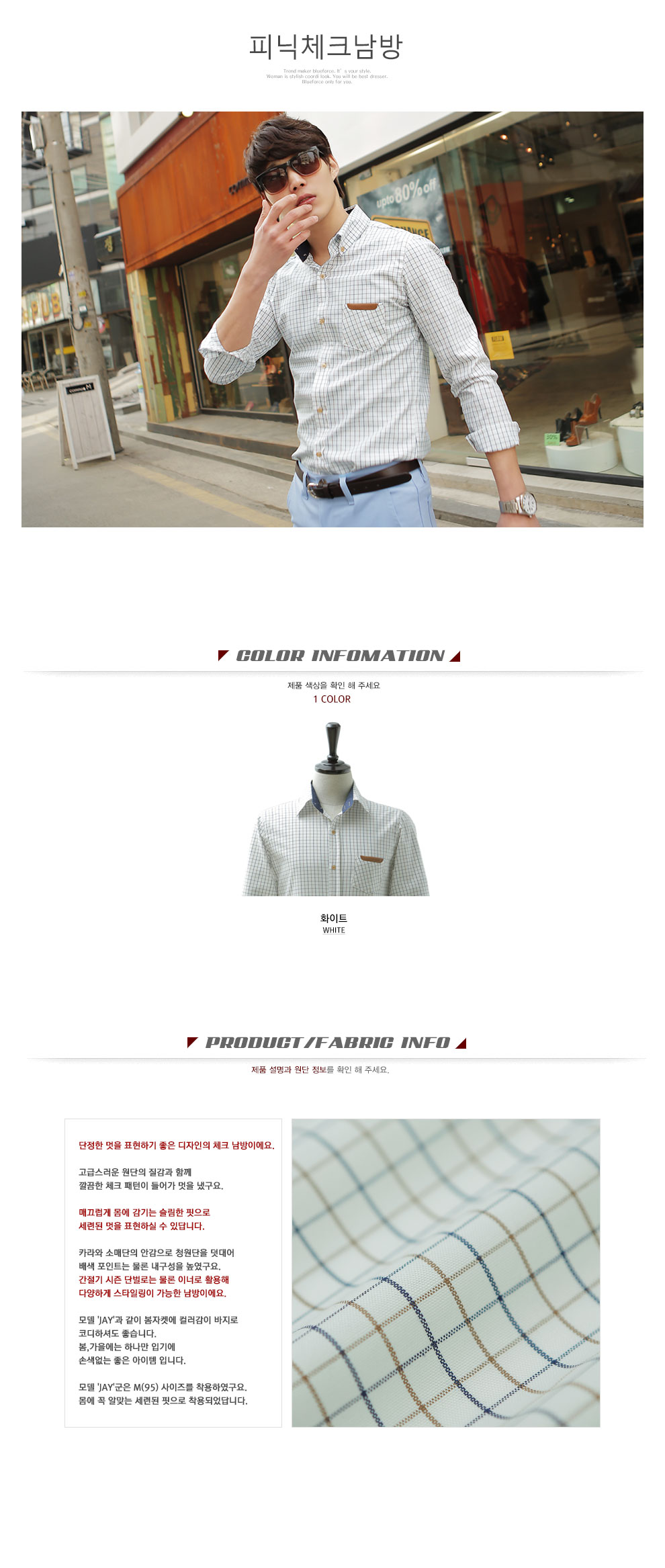 ´ÜÁ¤ÇÑ ¸ÚÀ» Ç¥ÇöÇϱâ ÁÁÀº µðÀÚÀÎÀÇ Ã¼Å© ³²¹æÀÌ¿¡¿ä. °í±Þ½º·¯¿î ¿ø´ÜÀÇ Áú°¨°ú ÇÔ²² ±ò²ûÇÑ Ã¼Å© ÆÐÅÏÀÌ µé¾î°¡ ¸ÚÀ» ³Â±¸¿ä. ¸Å²ô·´°Ô ¸ö¿¡ °¨±â´Â ½½¸²ÇÑ ÇÍÀ¸·Î ¼¼·ÃµÈ ¸ÚÀ» Ç¥ÇöÇÏ½Ç ¼ö ÀÖ´ä´Ï´Ù. Ä«¶ó¿Í ¼Ò¸Å´ÜÀÇ ¾È°¨À¸·Î û¿ø´ÜÀ» µ¡´ë¾î ¹è»ö Æ÷ÀÎÆ®´Â ¹°·Ð ³»±¸¼ºÀ» ³ô¿´±¸¿ä. °£Àý±â ½ÃÁð ´Ü¹ú·Î´Â ¹°·Ð À̳ʷΠȰ¿ëÇØ ´Ù¾çÇÏ°Ô ½ºÅ¸ÀϸµÀÌ °¡´ÉÇÑ ³²¹æÀÌ¿¡¿ä. ¸ðµ¨ 'JAY'°ú °°ÀÌ º½ÀÚÄÏ¿¡ Ä÷¯°¨ÀÌ ¹ÙÁö·Î ÄÚµðÇϼŵµ ÁÁ½À´Ï´Ù. º½,°¡À»¿¡´Â Çϳª¸¸ ÀԱ⿡ ¼Õ»ö¾ø´Â ÁÁÀº ¾ÆÀÌÅÛ ÀÔ´Ï´Ù. ¸ðµ¨ 'JAY'±ºÀº M(95) »çÀÌÁ Âø¿ëÇÏ¿´±¸¿ä. ¸ö¿¡ ²À ¾Ë¸Â´Â ¼¼·ÃµÈ ÇÍÀ¸·Î Âø¿ëµÇ¾ú´ä´Ï´Ù.